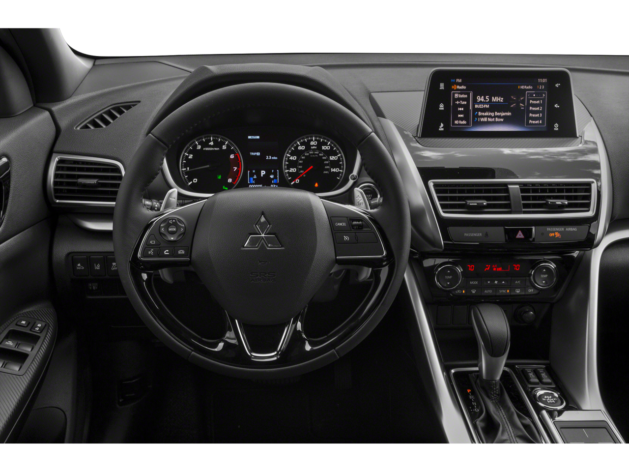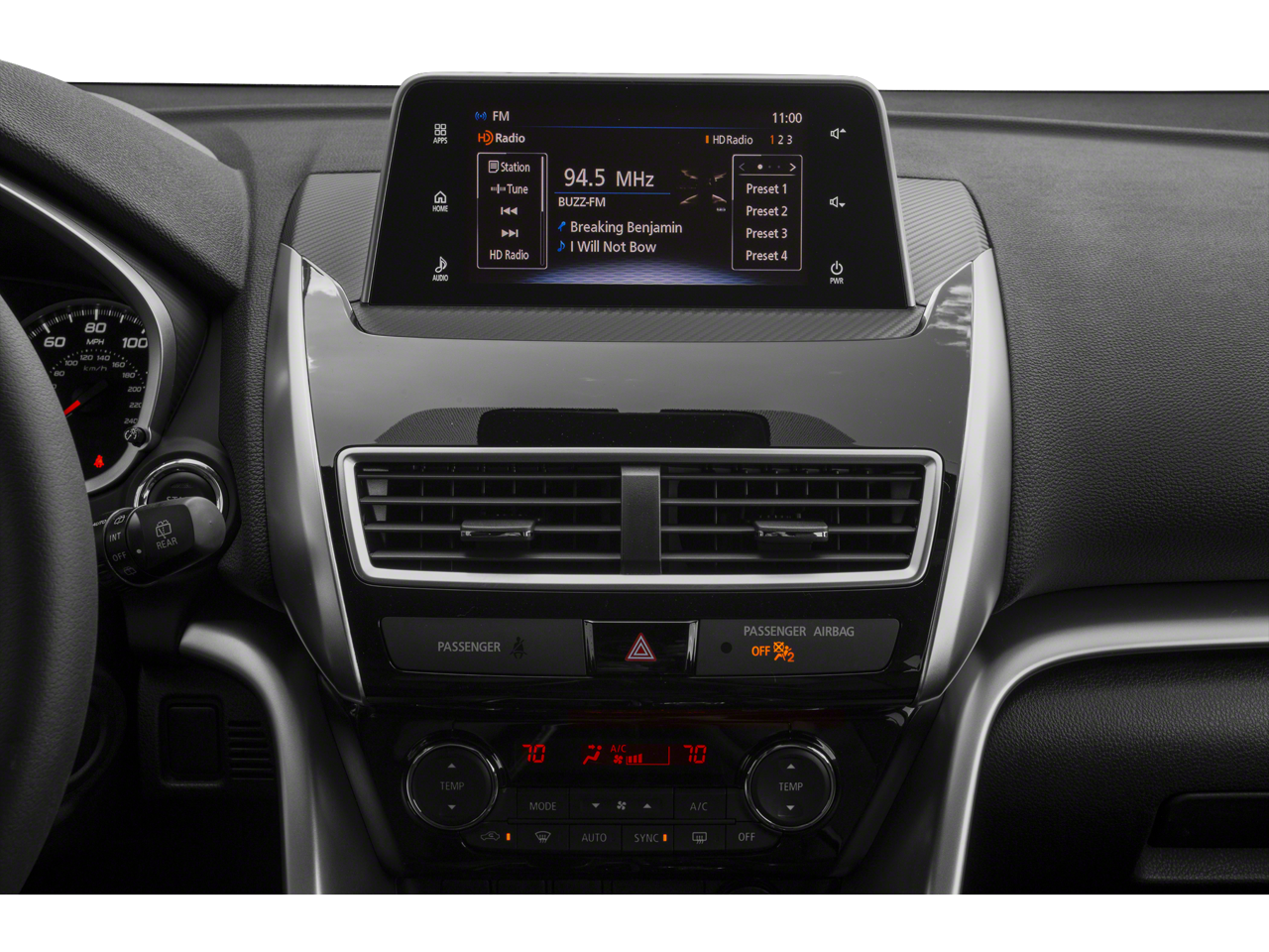 - Radio: AM/FM 7.0" Smartphone Link Display Audio -inc: touchpad controller, 6 speakers, Bluetooth technology, front USB ports, Apple CarPlay and Android Auto compatibility, steering wheel audio, phone and voice controls, SiriusXM Satellite Radio w/3-month subscription, HD Radio and Mitsubishi Connect w/Safeguard and Remote services and 24-month trial (mobile app enrollment required)