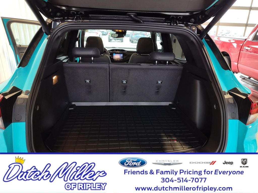 Convenience Package: Single-Zone Auto Climate Control Air Conditioning; 1 type-A and 1 type-C USB Charging-Only Ports; 8" Diagonal Color Touchscreen Display; 120-Volt Power Outlet; Inside Rearview Auto-Dimming Mirror; Driver and Front Passenger Illuminated Vanity Mirrors; SiriusXM Radio. Driver Confidence Package: Rear Cross Traffic Alert; Rear Park Assist; Lane Change Alert with Side Blind Zone Alert. Preferred Equipment Group 1RS: Continuously Variable Transmission; Cloth with Leatherette Seat Trim; 225/55R18 All-Season BW Tires; 5.45 Axle Ratio; 4. 255 lbs (1. 930 Kgs) GVWR; 1.3L Ecotec Turbo DOHC SIDI Engine with Variable Valve Timing; Front Bucket Seats; 18" High Gloss Black Machined Aluminum; Chevrolet Infotainment 3 System Radio. Sun and Liftgate Package: Hands-Free Power Programmable Liftgate; Dual-Pane Panoramic Power Sunroof. **Equipment listed is based on original vehicle build and subject to change. Please confirm the accuracy of the included equipment by calling the dealer prior to purchase.**