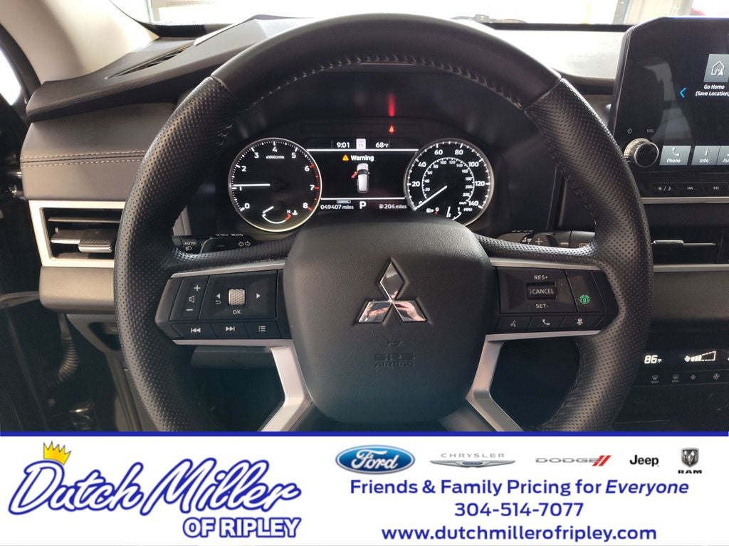 - Radio: AM/FM 9.0" Navigation w/Smartphone Link -inc: 6 speakers, Apple CarPlay, Google Android Auto, SXM all-access and SXM traffic and travel link w/90-day subscription, Mitsubishi Connect, HD Radio, Bluetooth wireless technology, steering wheel controls for phone, audio and voice recognition and USB ports